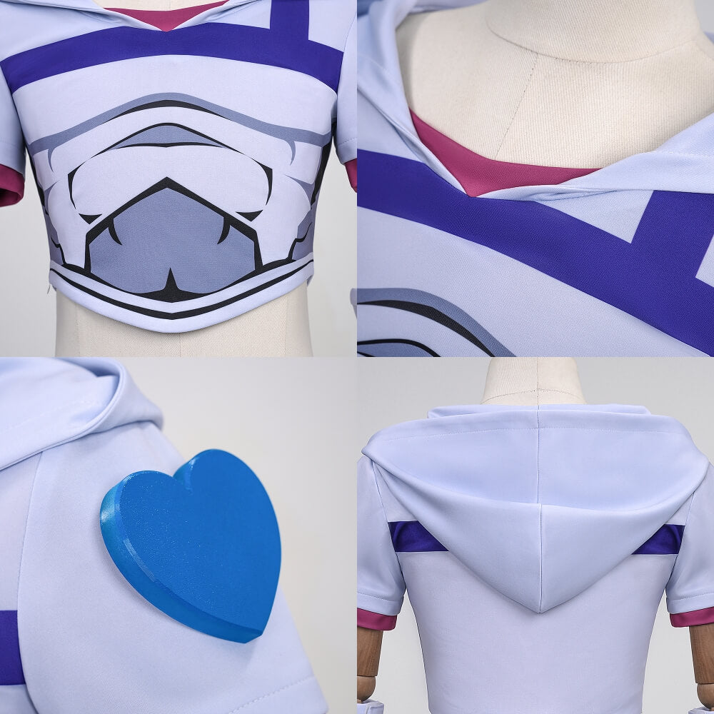 Package included: Tops, pants, hat, wrist guards, hat props, heart props