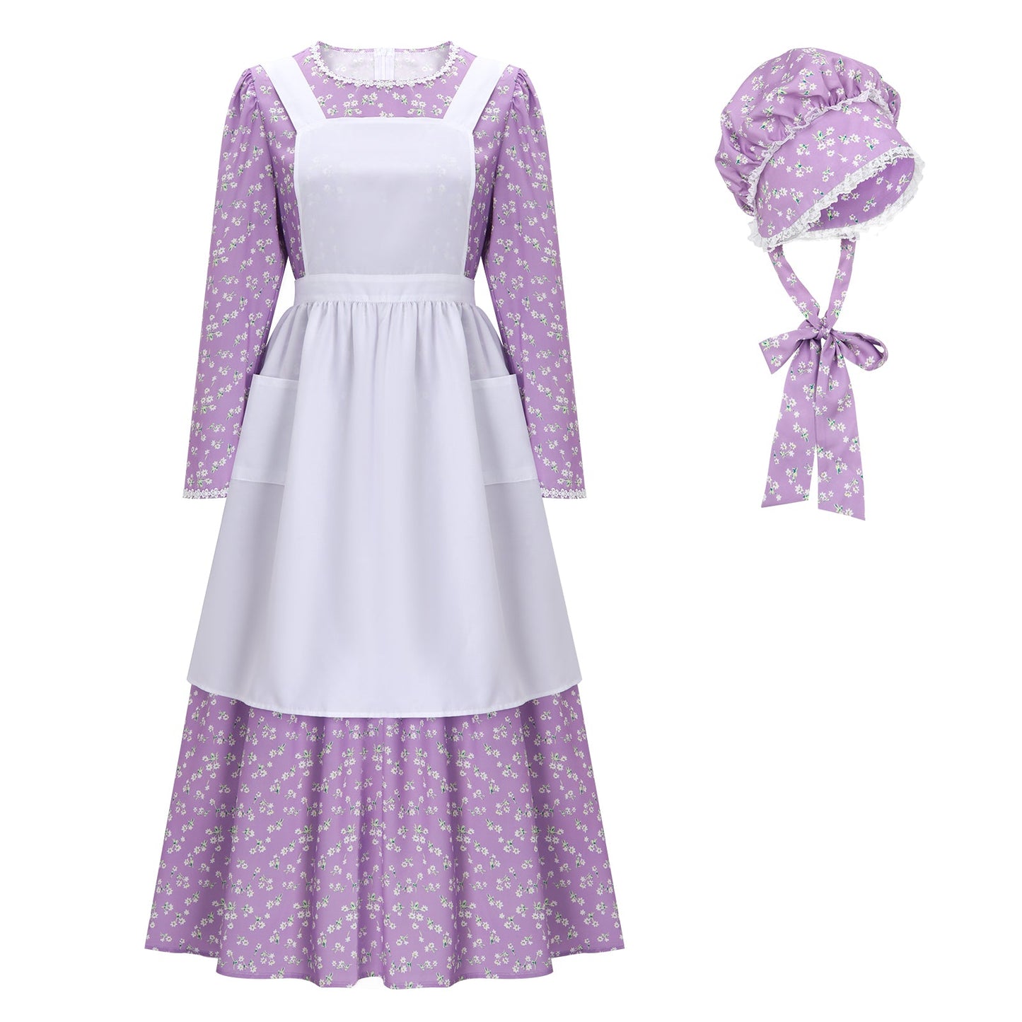 Type: Pioneer Womens Dress Costume American Historical Clothing Prairie Colonial Dress